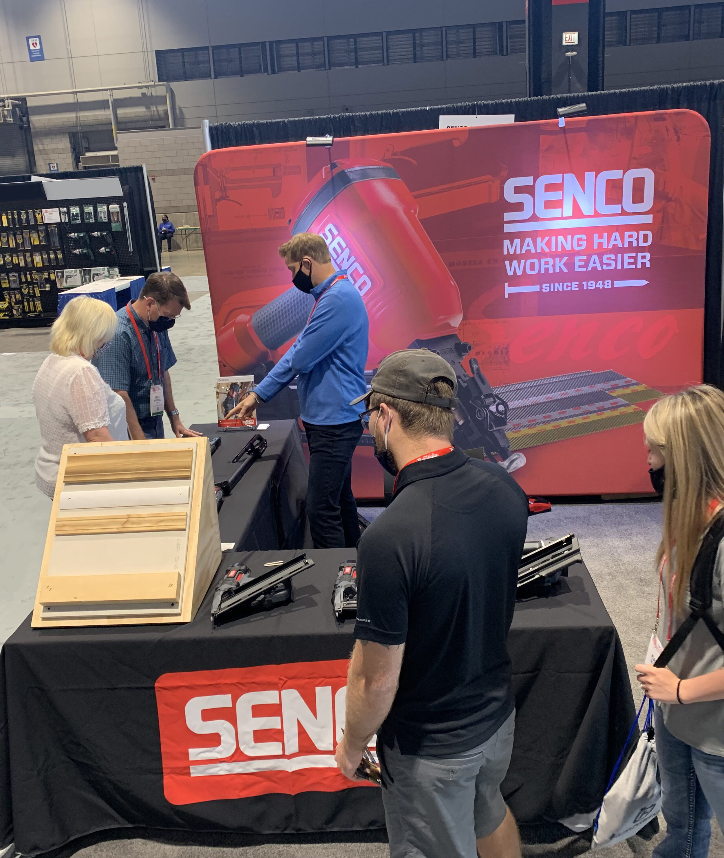 Dave Brashler discussing products at the Senco booth